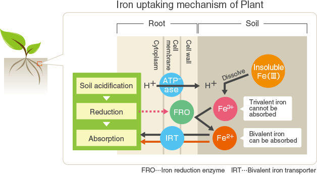 Our TetsuRiki Agri/TetsuRiki Aqua products are based on an understanding of the mechanisms at work within plants so that iron can be absorbed even if the plant is weak, such as in poor soil or weather, lead to cultivating healthy plants.