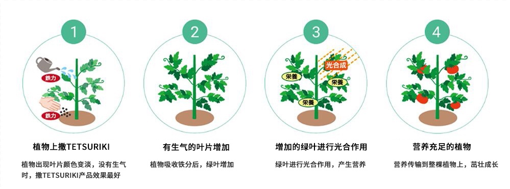 ①植物上撒 鐵力 植物出現(xiàn)葉片顏色變淡,沒有生氣時,撒Tetsuriki效果最好